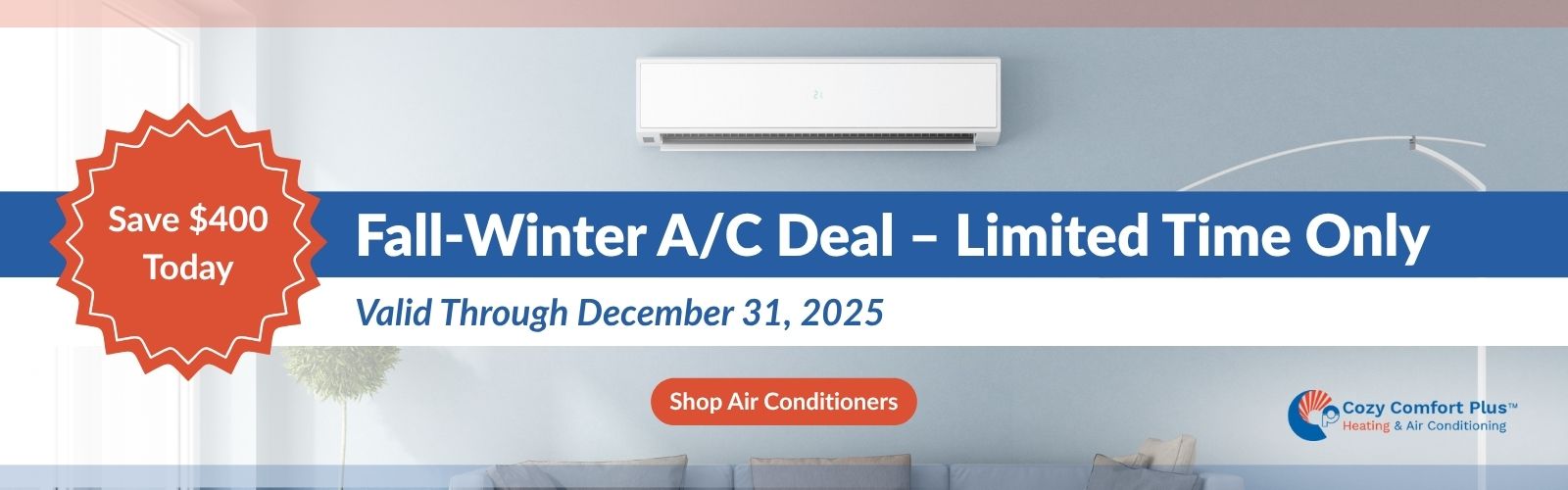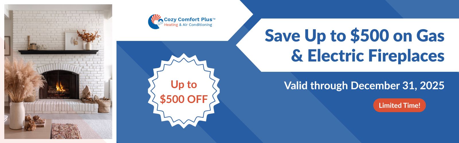 Fall–Winter Savings: Up to $500 on Gas and Electric fireplaces | $400 OFF A/C | $400 OFF Tankless | $500 OFF Heat Pumps